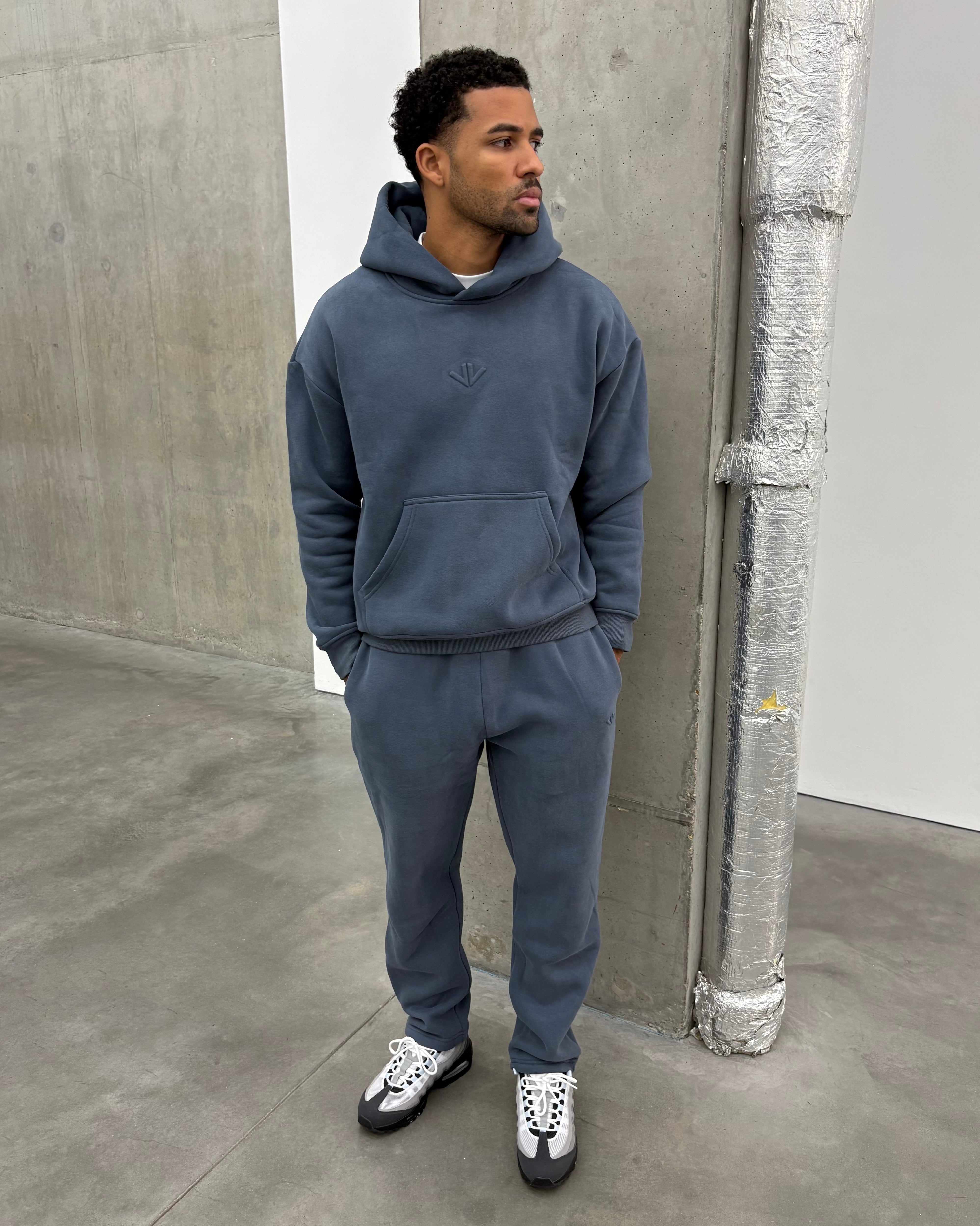 Smoke Blue Polar Fleeced Relaxed Hoody